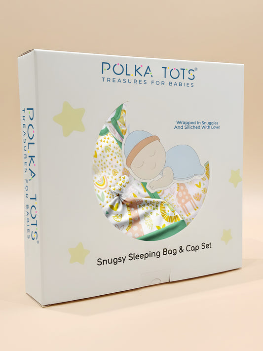 Polka Tots 100% Soft Cotton Jungle Print Sleeping Bag with Cap - Multicolor