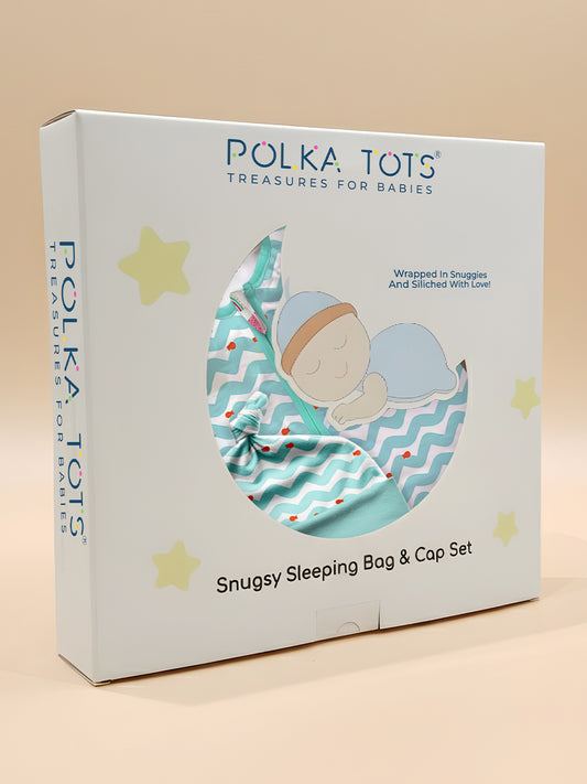 Polka Tots 100% Soft Cotton Wave Print Sleeping Bag with Cap - Blue