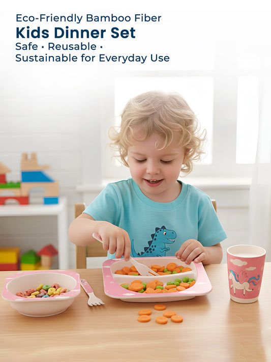 Eco Friendly 5 Pieces Bamboo Fiber Kids Dinner Set (Unicorn)