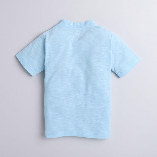 Polka Tots Half Sleeve T-Shirt With Crocodile Pocket - Blue