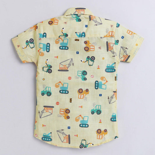 Polka Tots Full Half Sleeve Shirt With Inside Tshirt JCB Print - Yellow