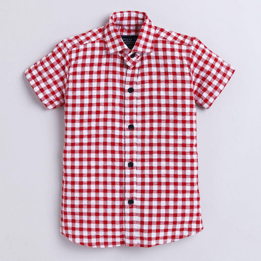 Polka Tots Full Half Sleeve Shirt With Inside Tshirt Super Wheel Checks - Red