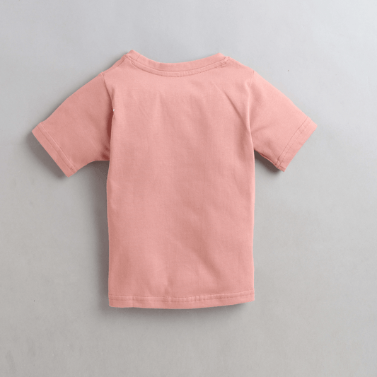 Polka Tots Half Sleeves Quote Print Tshirt - Peach