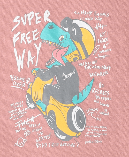 Polka Tots Half Sleeves Dinosaur Print Tshirt - Peach