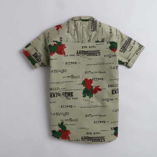 Polka Tots Half Sleeves All Over Text Printed Shirt With Bow Tie - Green