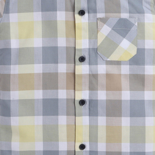 Polka Tots Half Sleeve Super Soft Cotton Checks Shirt With Roll Up Sleeve - Grey & Yellow