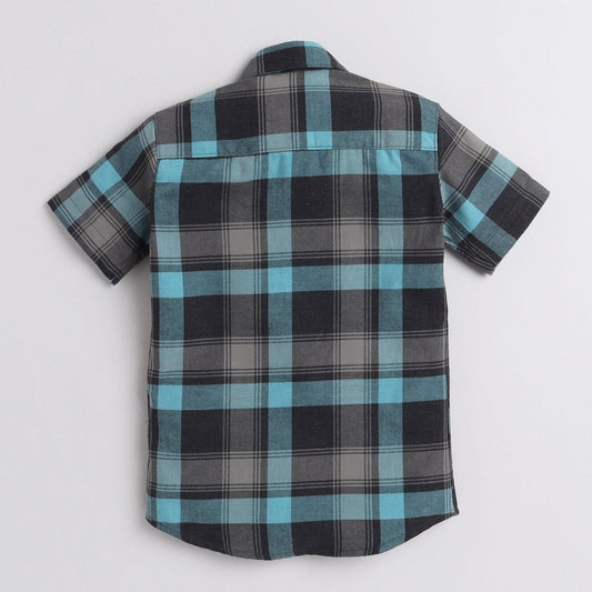 Polka Tots 2 Pockets Checks Shirt - Blue
