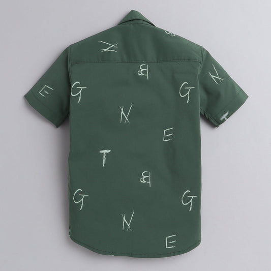 Polka Tots Half Sleeve Shirt Tennis Collar Alphabet Print - Green