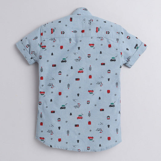 Polka Tots Half Sleeve Shirt Christmas Gifts Print - Blue