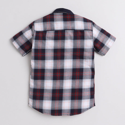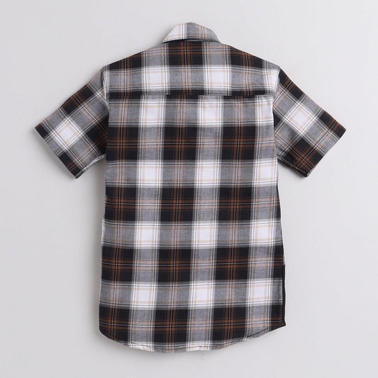 Polka Tots Half Sleeve Checks Kids Shirt PT Rubber Print - Black