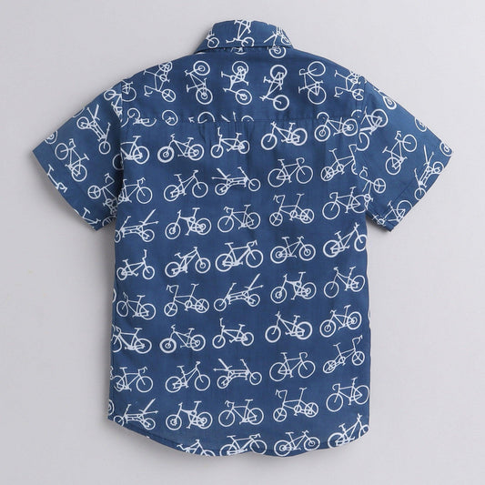 Polka Tots Half Sleeve Shirt Cycle Print - Blue