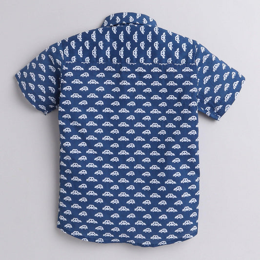 Polka Tots Half Sleeves Car Print Shirt - Blue