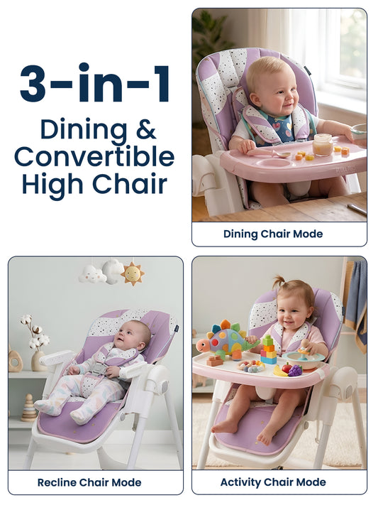 Polka Tots Twist n’ Taste 3 in 1 Convertible Star Design High Chair - (Purple)