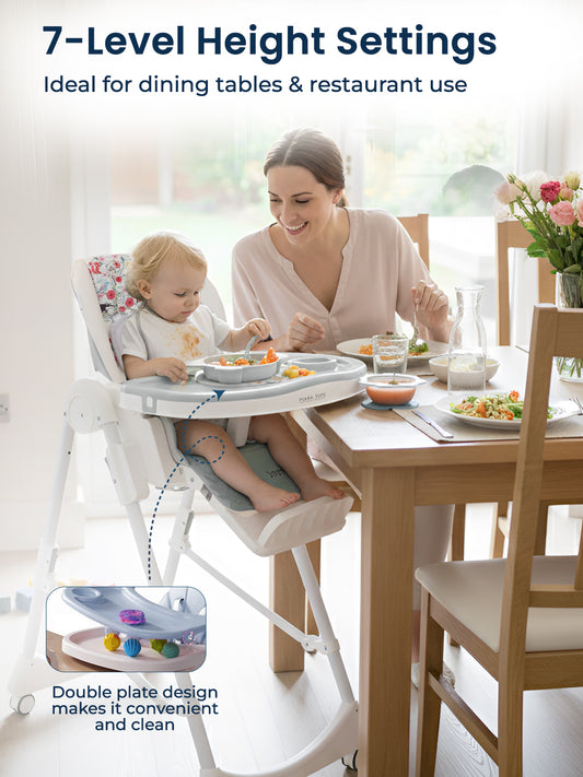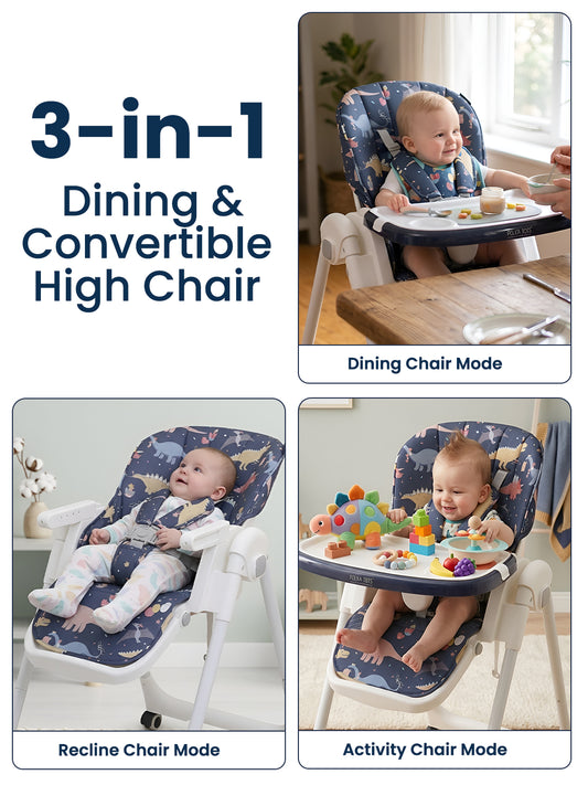 Polka Tots Twist n’ Taste 3 in 1 Convertible Dino Design High Chair - (Blue)