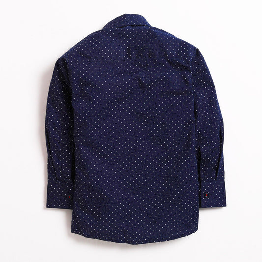 Polka Tots Partywear Full Sleeve Printed Shirt with Velvet Bow Tie 100% Cotton Navy Blue