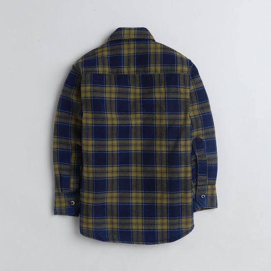 Polka Tots Full Sleeve Checkered Shirt Back Print - Green