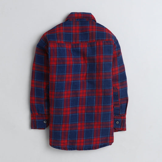 Polka Tots Full Sleeve Checkered Shirt Back Print - Red