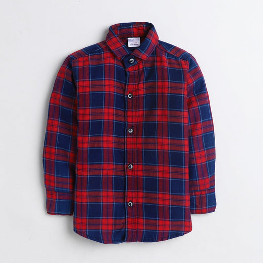 Polka Tots Full Sleeve Checkered Shirt Cool - Red