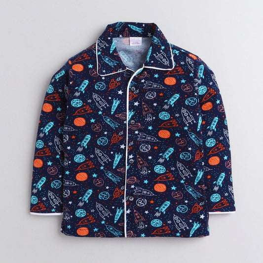 Polka Tots Full Sleeve Night Suit Pair Space - Navy Blue