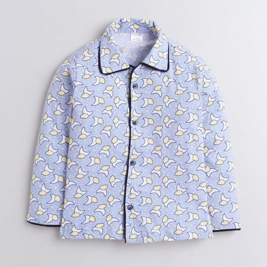 Polka Tots Full Sleeve Night Suit Pair Night - Light Blue