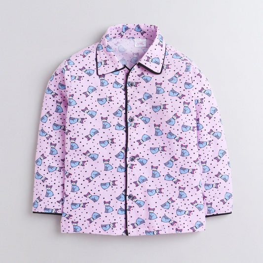 Polka Tots Full Sleeve Night Suit Pair Cat - Pink