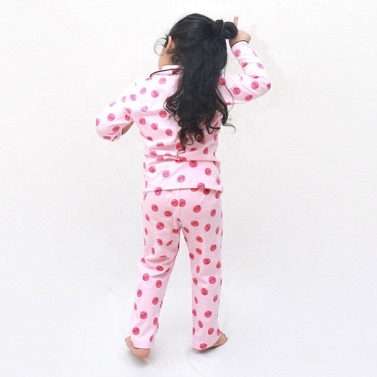 Polka Tots Full Sleeve Night Suit Pair Love - Pink