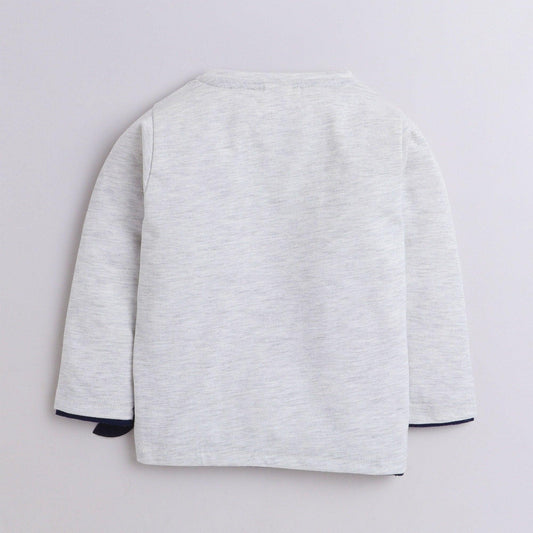 Polka Tots Full Sleeve T-Shirt Cotton Fish Print Grey