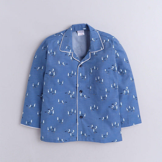 Polka tots Full Sleeve Night Suit Pair Blue (Pigeon)