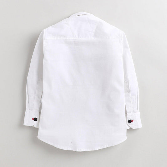 Polka Tots Full Sleeves Car Patch Detailing Shirt With Bow Tie - White