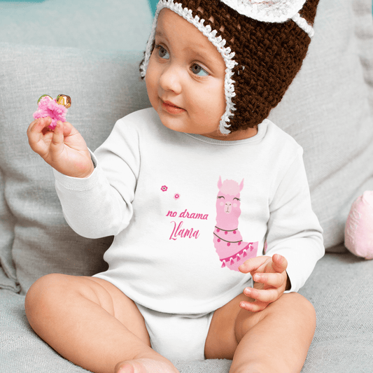 Polka Tots Full Sleeve Romper Onesie with Folded Mittens 100% Super Soft Cotton Llama White