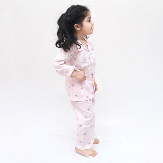 Polka tots Full Sleeve Night Suit Pair Pink (Origami Bird)