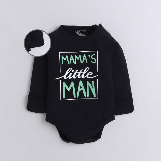 Polka Tots Full Sleeve Romper Onesie with Folded Mittens 100% Super Soft Cotton Mamas Little Man Black