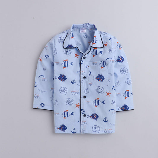 Polka tots Full Sleeve Night Suit Pair Blue (Aquatic)