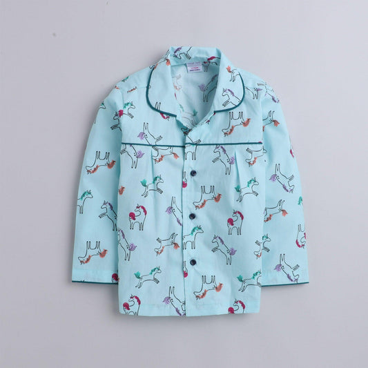 Polka tots Full Sleeve Night Suit Pair Green (Unicorn)