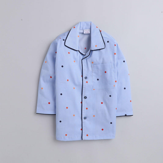 Polka tots Full Sleeve Night Suit Pair Blue (Polka Dots)