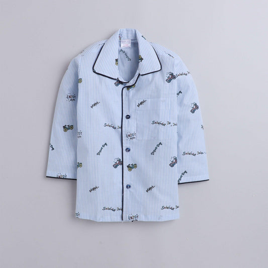 Polka tots Full Sleeve Night Suit Pair Blue (Bike)