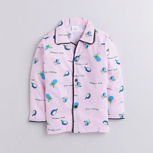 Polka tots Full Sleeve Night Suit 100% Cotton All Over Fruit Pink