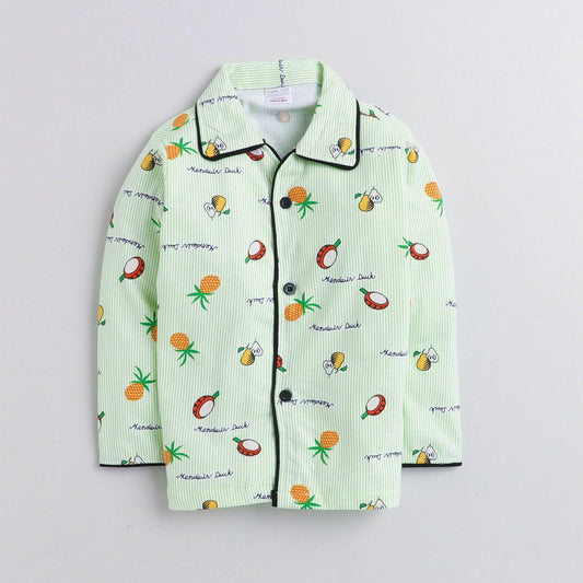 Polka tots Full Sleeve Night Suit 100% Cotton All Over Fruit Green