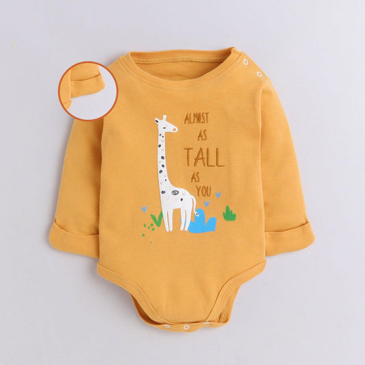 Polka Tots Full Sleeve Romper Onesie with Folded Mittens 100% Super Soft Cotton Giraffe Yellow