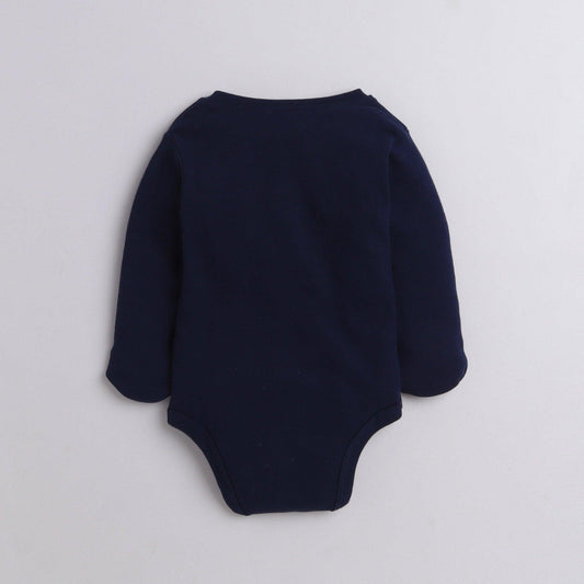 Polka Tots Full Sleeve Romper Onesie with Folded Mittens 100% Super Soft Cotton Made In India Navy Blue