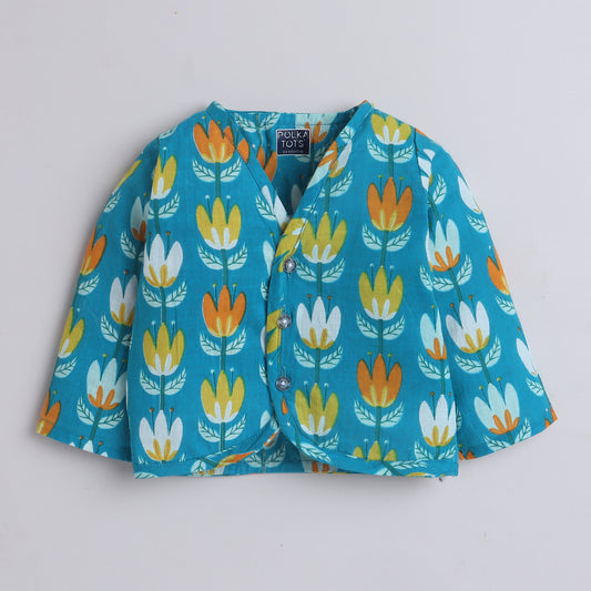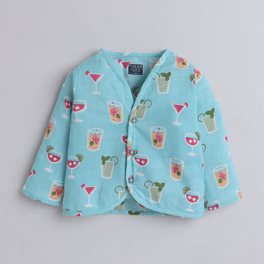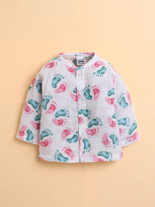 Polka Tots Full sleeves Lil Feet print Jhabla and Pant Set - Pink & Blue