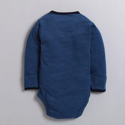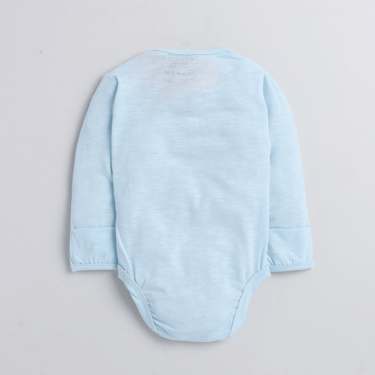 Polka Tots Full Sleeve Romper with Folded Mittens 100% Super Soft Cotton with Applique Animals Blue