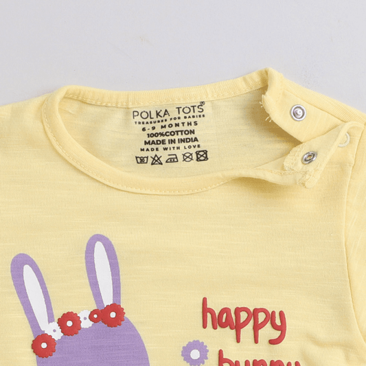 Polka Tots Full Sleeves Happy Bunny Printed Onesie - Yellow