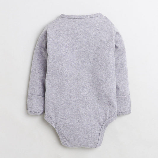 Polka Tots Full Sleeve Cotton Mittens Romper Just like DAD With Red Cheks bow tie - Grey