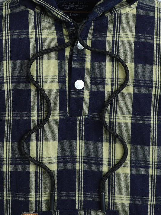 Polka Tots Kids Full Sleeves Checked Hoodie Shirt - Black and Green