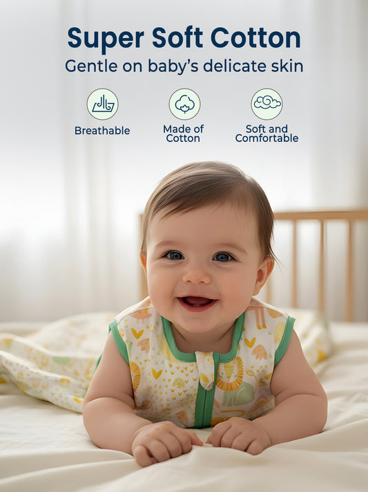 Polka Tots 100% Soft Cotton Jungle Print Sleeping Bag with Cap - Multicolor