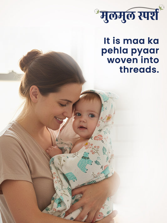 Polka Tots 100% Soft Muslin Cotton 2-Layer Hooded Baby Towel with Ear Appliqué - Bloomy Bear Print