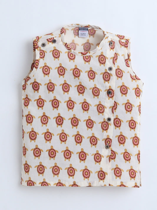 Polka Tots Turtle print Sleeveless Jhabla and Pant Set - Multicolor