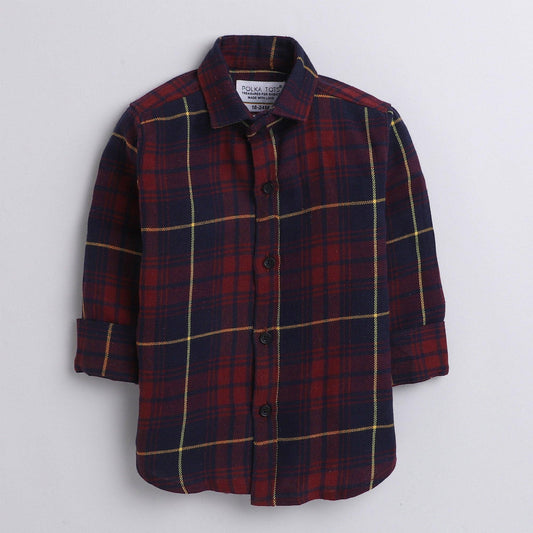 Polka Tots blue yellow checks front double pocket shirt - Blue