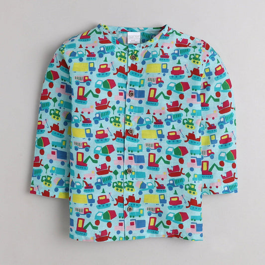 Polka Tots Car print Full Sleeves Front open Nightwear Kurta pyjama set - Blue